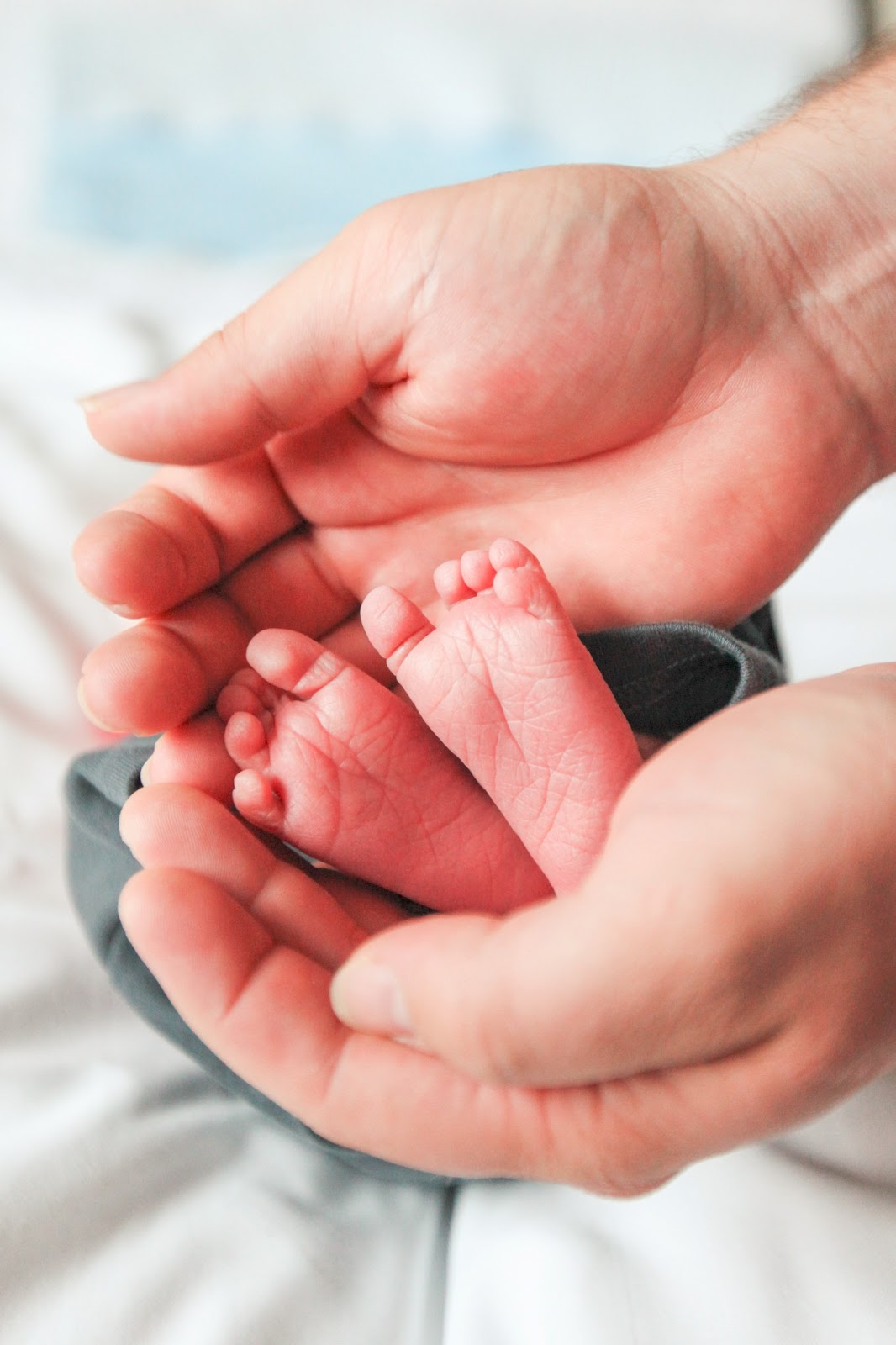 When you have a baby, the hospital has a photographer come in and take baby's first official picture. Most of us have the one picture where we're laying in the bassinet and most of the time crying. At our local hospital they have a professional photographer come in and take a lot of photos and not just photos of the baby, but of the whole family. They then give you an extensive price list of all the packages you can order with your brand new baby's photos! When our friends, Josh & Lauren, had their baby, the photographer did a slideshow with some sweet music that ensured you wanted to buy their photos. Luckily, we got by without the slideshow because I'm sure I would've ordered every package available. Even though I didn't buy a whole bunch of prints, I DID get the CD with all the pictures they took. Without further ado, here are the photos...