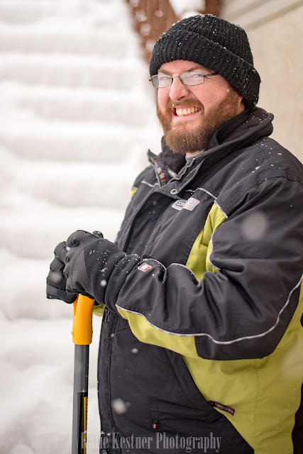I woke up yesterday morning to snow falling. I thought "well, huh." and got we all got ready for school and work. Although by the time I got Luke to daycare it wasn't slowing down. The school felt they'd probably close early so I just loaded him back up and took him to my mom and dad's. I got to work and couldn't do any of my scheduled office visits because everyone was closing and the roads were deteriorating. I checked our local news station and now instead of 1-2 inches they were saying 9-12. Ummm. I got permission to work from home the rest of the day and went and got the kids and got my behind back up our steep hill. Dillon got home shortly after and he and Luke went outside to play and I finished up work while the baby napped in the afternoon.
